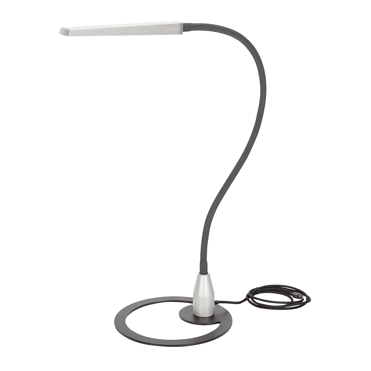 Dabei ist die Leuchte dank des Aluminiumgehäuses sehr robust und langlebig. Erhältlich in zwei verschiedenen Gehäusefarben (silber oder schwarz eloxiert) und mit stoffummantelter Flexwelle (vier Farben zur Auswahl), wird die Leuchte zu einem Hingucker in jedem Zuhause.