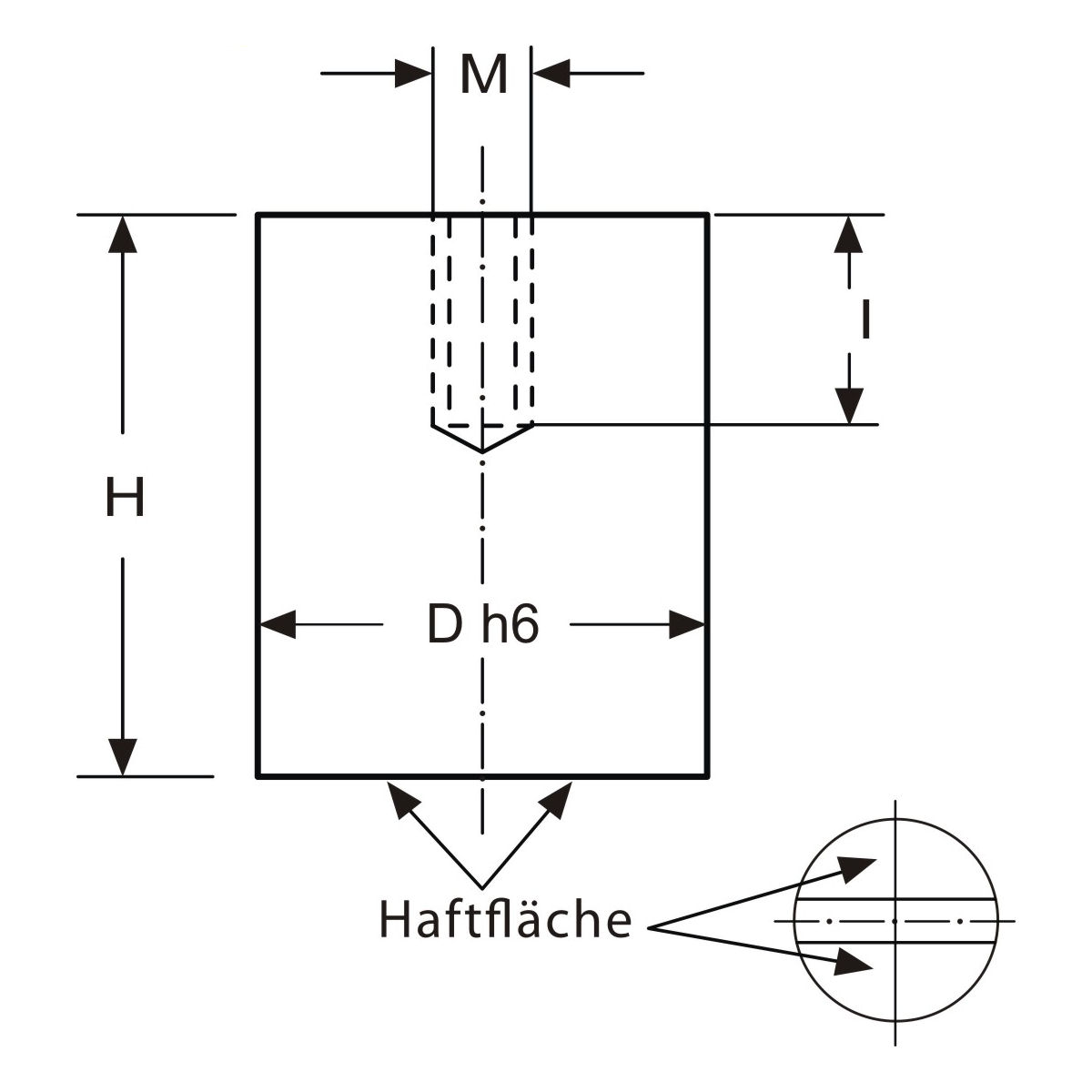 | D in mm | Toleranz D in mm | H in mm | Toleranz H in mm | Gewinde | Haftkraft in N | max. Einsatztemperatur in °C | Klima | Qualität | Mantel | |